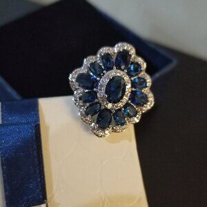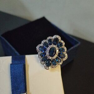 Swarovski Elements Blue Crystal Floral Ring Women's size 7
