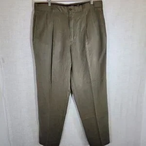 READ Tommy Bahama Silk Dress Pants Mens Act 36x30 Brown Pleated Relaxed Trousers