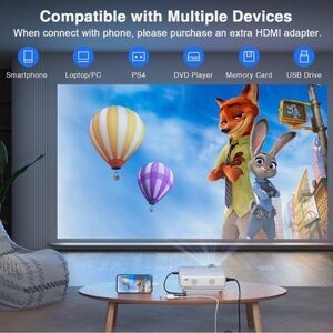 Ankyo projector in white with a remote control. Perfect for home entertainment.