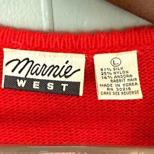 Marmie West Red V Neck Embellished Floral Sweater Angora Silk Blend Women L