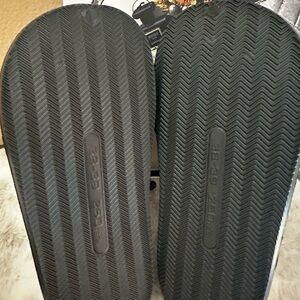 Comfortable black slippers with a soft cream lining. Perfect for lounging. Womens 38-39 but fit is probably 6-7 US
