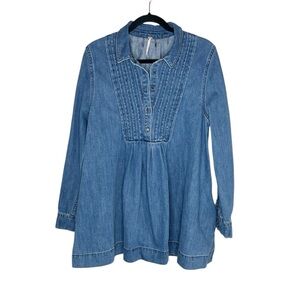 Free People 100% Cotton Baby Blues Denim Swing Oversized Tunic Top size Small