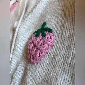 LUNA IVY Kitschy 3D Strawberry Knit Kawaii XS Cardigan Novelty Fruit Sweater Fun