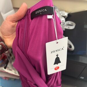 NWT Zesica Fuchsia Ruched Body-con High Low Ruffle Mermaid Hem Size L. New with tags, no visible flaws to note! Femme. Spring. Dance. Valentine.