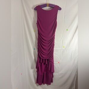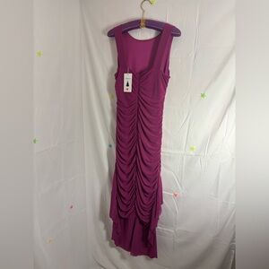 NWT Zesica Fuchsia Ruched Body-con High Low Ruffle Mermaid Hem Size L
