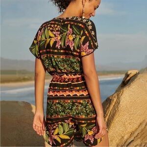 Farm Rio Swim Coverup Tunic Dress Floral Print Botanical Yellow Black Size Small