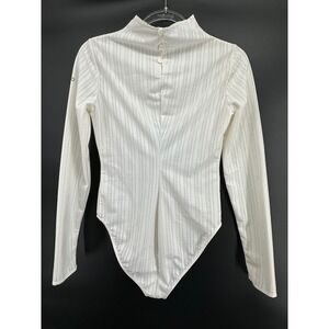 Alo Yoga Cream Perforated Mock Neck Long Sleeve Bodysuit Size M