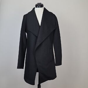 BB Dakota coat, BB Dakota jacket, black coat XS, black drape jacket, waterfall coat, longline cardigan coat, women’s outerwear XS, casual black coat, lightweight coat for fall, chic black layering jacket, minimalist black coat, BB Dakota open front, soft ribbed jacket, stylish black topper, versatile black cardigan coat, modern black blazer alternative, XS black coat women, trendy outerwear