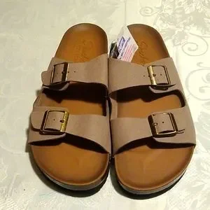 New. Size 10. Roomier Fit. Ultrasoft cushioned for comfort. Color: Taupe. Great for summer! Please see photo where it shows corner of description tag cut.
