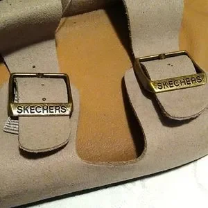 Skechers Luxe Foam Relaxed Fit Strap Sandals Size 10 Taupe cushioned comfort