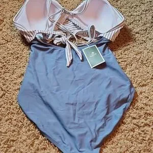 NWT EoMenie Striped Blue and White One Piece Swimsuit Wimans Size Medium