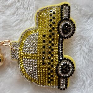 Yellow Taxi Rhinestone Car Keychain Bag Charm