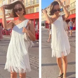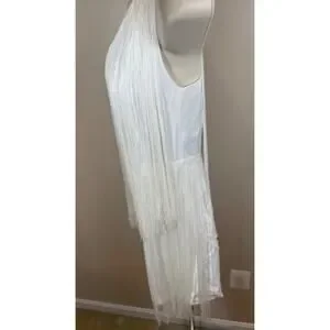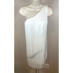 No Pise La Grama Cascada One Shoulder Fringe Satin White Mini Dress Sz 0 is brand new with tags! Featuring: