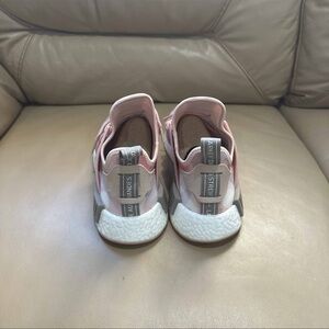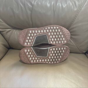 Adidas sneakers featuring a pink and gray design. Modern and comfortable.