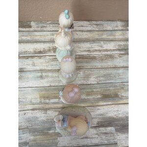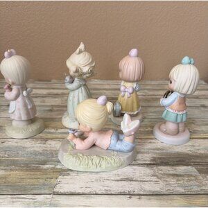 Group lot of 5 collectible Precious Moments figurines by Enesco. Each piece is individually titled and marked on the base. All feature hand-painted bisque porcelain.