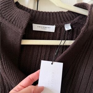 REVOLVE | Equipment Femme Brown Ribbed Wool Sweater XS | Split Neck Nwt