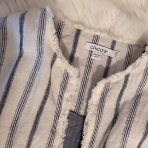 Chico's jacket with navy and white stripes. Ideal for casual outings.
