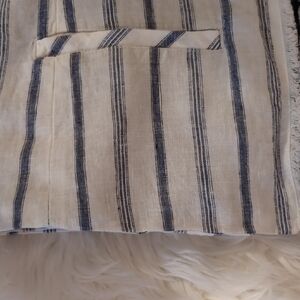 Worn once, beautiful linen jacket. Stitching is intact for pockets. This is worn open, no buttons or zip.