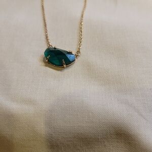 This elegant necklace features a stunning green pendant, perfect for adding a touch of sophistication to any outfit. The gold chain complements the vibrant green, making it a versatile accessory for any occasion.