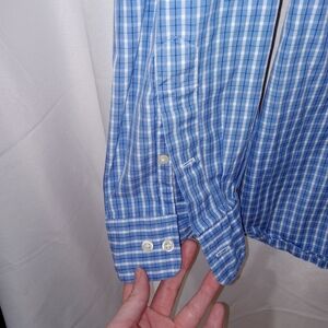 This product is a lot of two Ralph Lauren men's classic fit plaid long sleeve button shirts in size 18 36/37. Made of woven cotton fabric, these shirts feature a collared neckline and spread collar style. The multicolor plaid pattern adds a classic and preppy touch, suitable for various occasions such as travel, parties, casual or formal events, workwear, and business meetings. With embroidered accents and easy care features, these shirts are a timeless addition to any man's wardrobe, perfect for all seasons.