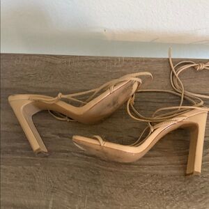 Chic and modern nude heels by Alias Mae. Strappy design with a sleek silhouette. Ideal for elevating any outfit.