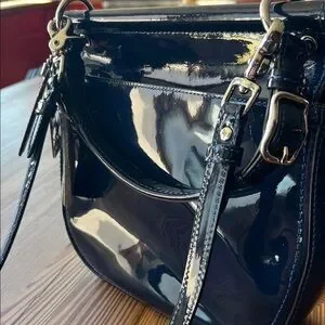 Elegant Coach crossbody with a glossy finish. Ideal for versatile styling. Valentines , vintage