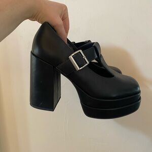 Size 7.5. Double Platform T-Strap Heel (WW). Excellent used condition with some minor markings, see photos. Maybe worn once or twice. Mary Jane look. Reasonable offers welcome!