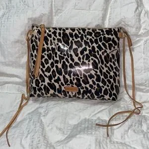 Consuela bag leopard. Gently used no crossbody strap. Leather trim accents. Excellent condition smoke free home. Super cute bag. Can add a strap or use as oversized clutch. Questions? Leave a comment below!