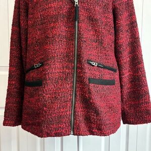 Lucky Brand Red Shaggy Tweed Long Sleeve Zippered Moto Jacket Large