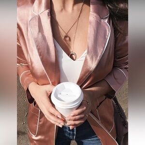 NWOT Blush Satin Contrast Piped Blazer Size Large