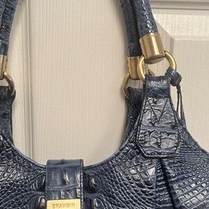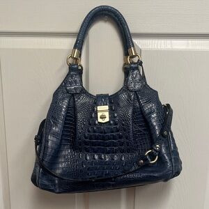 Brahmin Navy Crocodile-Embossed Shoulder Bag