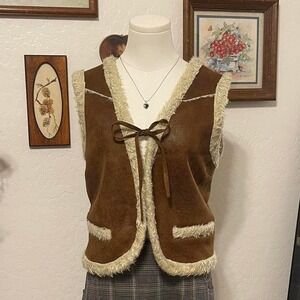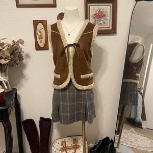 Vintage Faux Shearling Suede Tie Vest