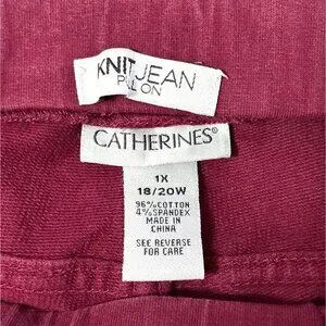 Catherines Womens Knit Jean Pull-On Pants 1X 18/20 Berry Vampire Dark Red Wine
