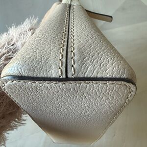 Chic Kate Spade cosmetic bag in cream and beige. Ideal for organizing essentials with style.