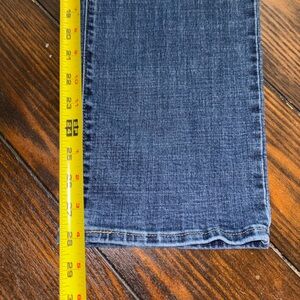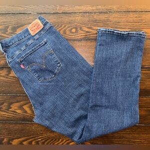 Classic straight leg fit. Dark blue denim. Iconic Levi's style. Red tag. In very good condition from a smoke free home. See pics for measurements. Size 18.