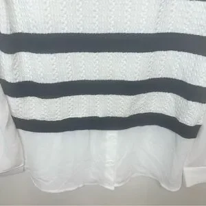 Adrianna Papell V-Neck Twofer Navy Blue & White Sweater Size XSmall