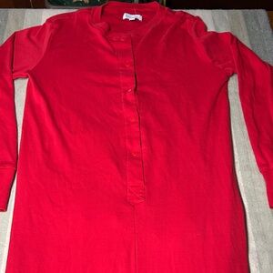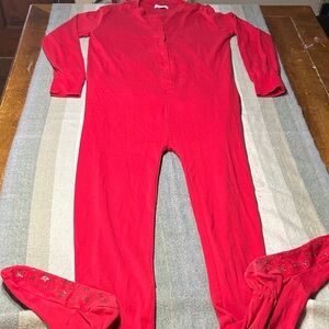 Bright red onesie with button-up front. Ideal for relaxing at home.