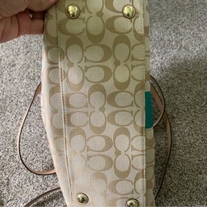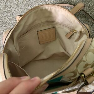 Coach Signature Stripe Khaki Emerald green shoulder Crossbody wallet Bundle EUC