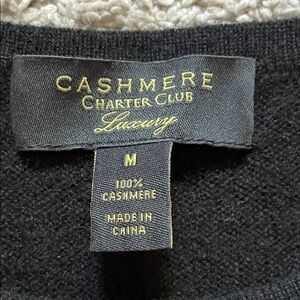 Luxurious black cashmere sweater by Charter Club. Soft and elegant. 100% cashmere from Charter Club. Only worn once. Perfect for Valentine’s Day.