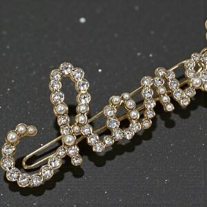 The script design adds a bold, statement-making accent to any hairstyle—perfect for elevating a chic updo, sleek ponytail, or even clipped to a bag or blazer for a fashion-forward twist.