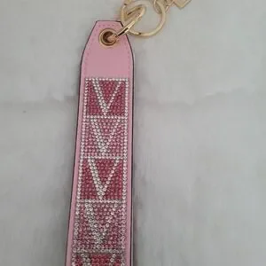New, never used but tag removed. Gold hardware. Pink with V on it. No gems missing.