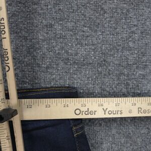 Color: Dark wash blue denim with subtle fading at the thighs and knees.