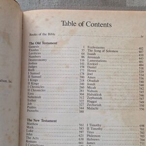 Thomas Nelson Regency King James Version Holy Bible. Black bonded leather cover, gold-tone lettering, and classic red-letter text. Includes a built-in dictionary/concordance. 1977/1984 copyright. Clean pages with light foxing on presentation page. Binding intact.