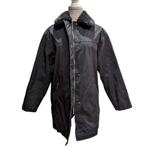 Bernardo Women's Black Long Jacket Faux Fur Collar Fleece Lining Size S