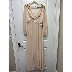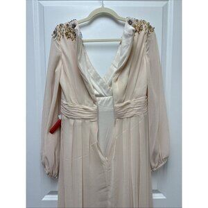 Mac Duggal Size 8 Cream 55694 Embellished Shoulder Blouson Sleeve Gown Dress New