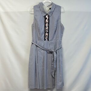 Ivanka Trump Blue White Striped Dress Sequin Floral Detail Size 14