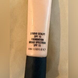 MAC Studio Sculpt SPF 15 Foundation, a creamy, gel-based foundation known for its hydrating properties and natural satin finish.
