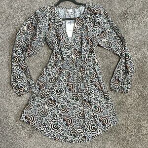 A.L.C. Adelaide Dress Women's NWT 2 V Neck Pockets Long Sleeves Mini Multi Print