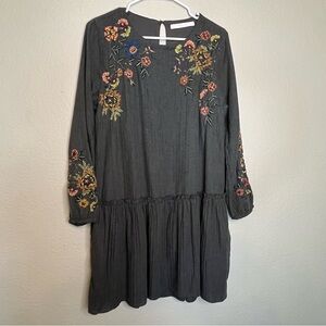 Zara Trafaluc Collection Embroidered Floral Gray Dress Size Large
