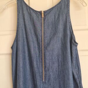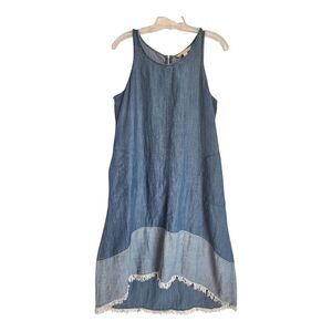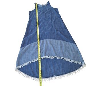 Hope & Harlow Denim Hi Low Tank Swing Dress Boho Fringe Hippie 2-tone Blue sz 12